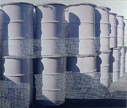 This exhibition comes at a crucial moment of transition in Oropallo's career. In her most recent work, she utilizes a strong palette of color and incorporates digital imagery to create monumental canvases of large industrial containers, stacks of cinder blocks, buckets, pipes, and other construction materials that we customarily ignore. In Oropallo's hands, these images are recreated into objects of luminous beauty. Although the painter's technique has never been the primary focus of her work, these most recent paintings demonstrate her unique ability to virtually "paint with a computer," as Jeff Kelly explains in his insightful exhibition catalogue essay. While these most recent images seem far removed from the sensuous paintings of Oropallo's early career, all of her paintings refer to the visual trick, and the process of transformation through which the viewer simultaneously recognizes and yet no longer sees the everyday objects that are her subject matter.