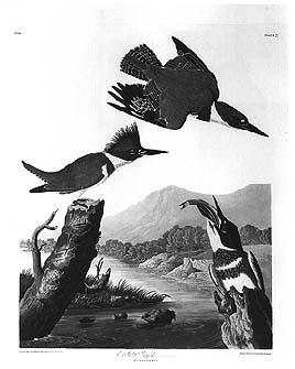 (left: John James Audubon (I785-1851), Belted Kingfisher, engraving
