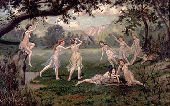 Wind (1899), a proto-surrealist image featuring six maidens suspended