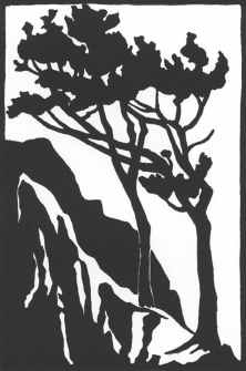 Sentinels of the Wild, linoleum block print, Gift of Warren and Marlene