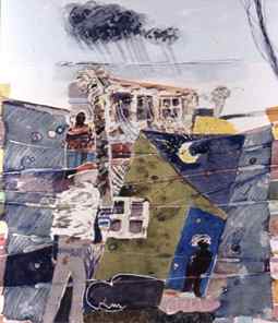 Leo Twiggs has developed many themes over the course of his career as an artist. These inherent ideas and beliefs are clearly, though often subtly revealed in his chosen medium, batik painting. The batik process, an Indonesian method of hand-printing textiles by wax coating the parts not to be dyed, is an essential element of his work. His use of the process results in the suggestion of aging artifacts preserved from a time long passed. Among his persistant themes are familial ties and the perseverance of man in the face of adversity. The music and poetry that have arisen from America's black heritage are also important aspects of his work. Hurricane Hugo, which led to destruction in the low country of South Carolina, inspired a series of his images.
