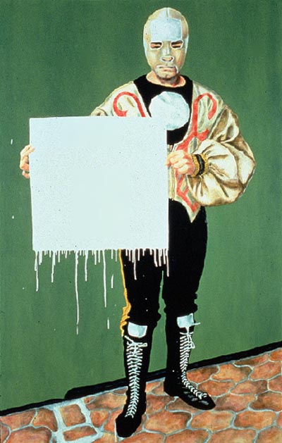 of large (usually 7 x 5 feet) images of Mexican wrestlers reflects a playful