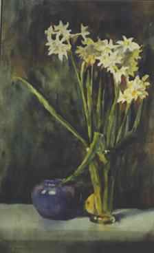 (right John LaFarge (1835-1910), Bowl of Flowers, watercolor