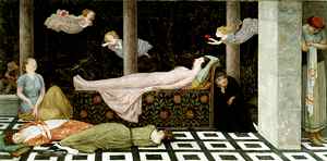 Lastly, the exhibition will look at representations of death, notably funeral rituals, in a number of touching works dating from the nineteenth century to Dorothea Tanning's 1946 painting called Guardian Angels. Touching posthumous portraits, imaginary fantasies of lost loved ones, and works showing the diverse death rites of other cultures, tell the story of the profoundly human experience which unites us not only as countrymen but also as human beings. The works in this special exhibition are from twenty-eight prestigious museums throughout the southeast including the Virginia Museum of Fine Arts (Richmond, VA), New Orleans Museum of Art, Speed Art Museum (Louisville, KY), and the High Museum of Art (Atlanta, GA). The exhibition is organized by the Southeastern Art Museum Directors Consortium and also will be exhibited through April 11, 2004, at the Columbus Museum (Columbus, GA) [5] and the Speed Art Museum from September 14 through December 12, 2004.