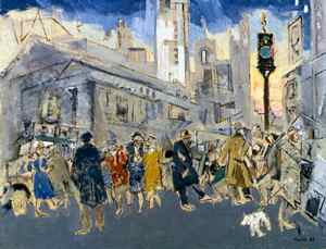 After the First World War, long after he had closed 291, Stieglitz remained committed to the work of four painters -- Arthur Dove, Marsden Hartley, John Marin and Georgia O'Keeffe. In 1925, he reopened a gallery in New York. That same year, collector Duncan Phillips added a room to his Washington D.C. museum specifically dedicated to new American paintings. Few could have predicted the rapport that ultimately developed between Stieglitz and Phillips. Phillips was a wealthy art patron and conservative critic whose review of the 1913 Armory Show dismissed abstraction and the European avant garde in one sweeping condemnation. After World War I, however, changes in both men led to common ground. Both came to believe in exploring the frontiers of new American painting in intimate gallery spaces and dedicated their lives and fortunes to making that experience possible. (right: John Marin, Pertaining to Fifth Avenue and 42nd Street,1933)