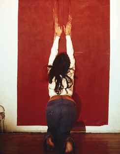 Embracing the aims of feminism, Mendieta quietly subverted the monumental gestures of male land artists such as Robert Smithson and Michael Heizer by working at a human scale in the landscape. Critical of the exclusion of artists of diverse races and ethnicities from the art world and early feminism, she vehemently asserted her own trans-cultural identity. Borrowing freely from a variety of cultural traditions throughout the world, she frequently appropriated symbols and aspects of the ritual practices of ancient and indigenous cultures of the Americas, Africa, and Europe in her art. While abnegating all forms of boundaries, Mendieta's cipher -- the naked female form that performs in the studio, merges with the landscape, is etched on a leaf, or is burned into the soil or a tree trunk -- remained at the center of her production.