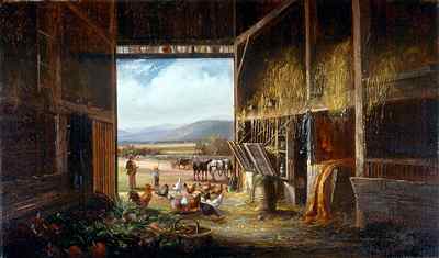 (1831-1915), Barn Interior, c. 1885, oil on canvas, 17 x 29 inches,