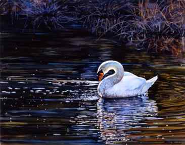 says. (right: Anne Boucher, "Swan on Mill Pond," 2004,