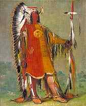 and a headdress of eagle feathers topped with buffalo horns. Catlin wrote