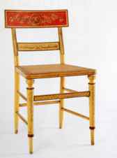 The early 19th century was an age in which the delights of the imagination held sway over popular taste. Young America was fascinated with the visual and its application to everyday objects. This fascination led to a dramatic and widespread aesthetic change-an outburst of creativity and desire to make the objects of everyday life visually and emotionally engaging and expressive."Fancy" objects, decorated with bold patterns, brilliant colors, and animated forms, were used in nearly every aspect of life -- from domestic baking tools to public parade uniforms and shop signs. While scholars have often categorized these colorful and playful artifacts as "folk art," American Fancy examines these goods as part of mainstream, urban, upper- and middle-class style and material culture. Furniture, ceramics, textiles, metals, glass and paintings, were purposefully designed to activate the senses and express distinct literary, philosophic, and political views. (left: Side chair, 1815, John and Hugh Finlay, Baltimore, painted poplar, maple and walnut. Lent by the MD Historical Society)