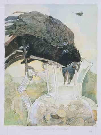Crow and the Water Pitcher (2000), watercolor and pencil on paper, illustration