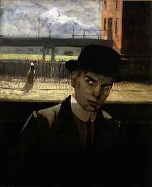 A strong "regionalist" movement in painting was also one of the results of the Depression, and it can be seen as a grassroots reaction to the cosmopolitanism of the preceding two decades. Grant Wood's painting Return from Bohemia (1935), which gives its name to this section of the exhibition, perfectly captures the endorsement of rural life and local customs. At the same time, an artist such as Charles Sheeler, who had experimented with Cubism earlier in the century, brought a photographic clarity and realism to his work of the 1930s and 1940s. Other artists working in a highly realistic mode -- such as Ben Shahn, Bernard Perlin, and Andrew Wyeth -- are also well represented in this compelling section of the exhibition.