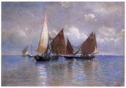 (above: William Stanley Haseltine (American 1835 - 1900), Venetian Fishing Boats, 1870s, watercolor and gouache over graphite on blue paper, 13 3/4 x 20 3/8 inches. Private collection, New York)