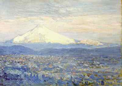 Portland scenes. (right: Childe Hassam, Mt Hood, 1908, oil