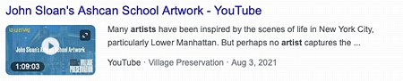 "New York City and the Ashcan school - American art movement," Nov, 1995 by Virginia M. Mecklenburg from Magazine Antiques. [Link found to be expired as of 2015 audit. TFAO is saving the citation for use by researchers.]