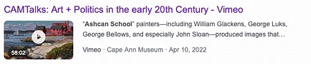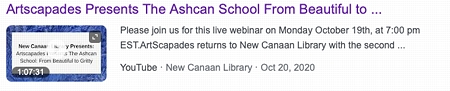 This section of our catalogue Topics in American Art is devoted to the topic "Ashcan Artists (The Eight)." Articles and essays specific to this topic published in our Resource Library are listed at the beginning of the section. Clicking on titles takes readers directly to these articles and essays. The date at the end of each title is the Resource Library publication date.