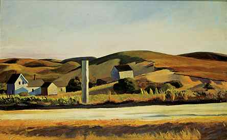 Painting Summer in New England is accompanied by a lavishly illustrated catalogue written by Fairbrother and published by Yale University Press (Spring 2006) in association with the Peabody Essex Museum and Marquand Books. It has nine thematic sections: Quiet Retreats, Sea and Shore, The Farm, Plant Life, Architecture, Streets and Gathering Places, Individuals, New England Nudes, and Coastal Light. These themes serve as "helpful gathering spots, rather than strict typologies," notes Fairbrother. The catalogue also includes a section on poetry, offered "in the same spirit of evoking and appreciating, rather than defining New England," he adds. (right: Edward Hopper, Road and Houses, South Truro,193033, oil on canvas, 27 x 43 inches. Whitney Museum of American Art, New York, Josephine N. Hopper Bequest)