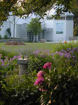 (above: Tammi Flynn, Florence Griswold Museum. Krieble Gallery thru front garden: The Robert and Nancy Krieble Gallery of American Art opened in the summer of 2002. Designed by Centerbrook Architects, this new gallery space blends in with the existing historic landscape.)