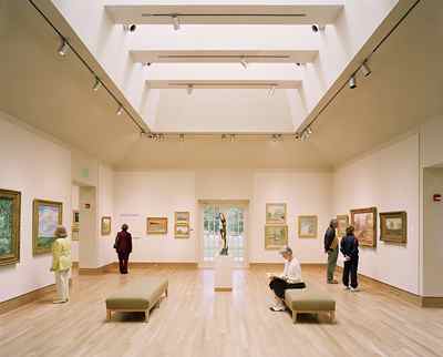 (above: Jeff Goldberg/Esto. All rights reserved. Krieble Interior: Three large gallery spaces allow for changing exhibitions. In addition, a state of the art storage and research facility houses the fine art collections and archives. )