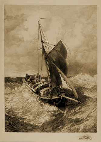 (above: Thomas Moran (American, b. England, 1837-1926), Untitled (Fishing boat on storm-tossed sea; after Harry Chase),1890. etching, plate: 27 x 19 3/4 inches. The Parrish Art Museum)