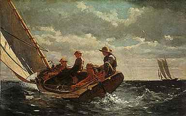 (right: Winslow Homer , Breezing Up (A Fair Wind), 1873-1876,