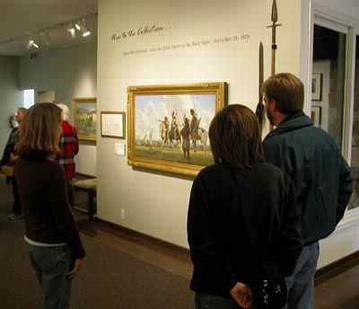 (above:MacNider Art Museum visitors discuss the Museum's new artwork, Unfinished Diplomacy - Lewis and Clark Departing the Brulé Sioux September 28, 1804. Photo courtesy Charles H. MacNider Museum)