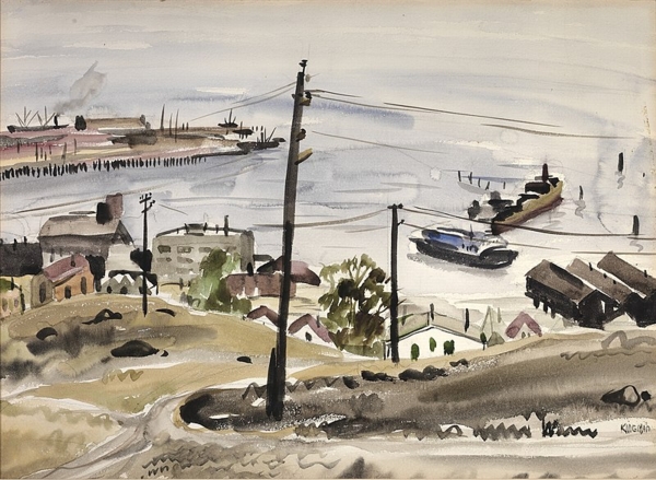 (above: Dong Kingman, Coastline, California, between 1935 and 1941, 15.7 x 22 inches, Smithsonian American Art Museum. Public domain, via Wikimedia Commons*)