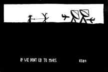 These are visually sophisticated works. Grimes is extremely attentive to composition and the demands of his medium. He initially sketches the design and words in pencil on the white ground and then fills in the surrounding spaces in black. All the important information thus stands out as white, highlighted against a dark ground. He explicitly seeks to effect a high contrast, having learned that if he painted white over black the words and images would never be as distinct and prominent as he desired. But aesthetics are not of primary importance to Ken Grimes. Rather, the message is. When asked about the response of those who think his art beautiful but who don't believe in alien presence, he states simply that they're getting only part of the meaning of the work.