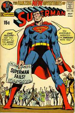 (above: Carmino Infantino, cover penciller and Neal Adams, cover inker, Superman #240 (DC Comics, July 1971), SUPERMAN and © DC Comics. All Rights Reserved.)