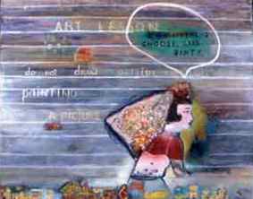 Renowned California artist Inez Storer's narrative drawings, paintings and prints are layered with colors and seemingly simplistic painted images and text. This exhibition featured at the MAM's Temporary Contemporary includes over 20 prints and paintings, and gives a wide view of the work of this remarkable artist. Storer's exhibition presented at MAM is indicative of a much larger oeuvre of work including small intimate prints to large paintings. Fascinating collage elements include bits of antique letters, books and other documents, European engravings, postcards and photos. The resulting images, at once whimsical and profound, are based in the day-to-day experience of relationships and domesticity and the worlds of dream, theater and past.