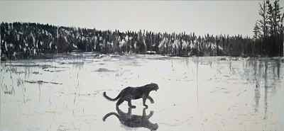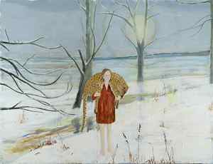 Cuban-born Martínez Celaya is creating this group of five large-scale, oil-and-wax paintings which explore issues of exile and rootlessness, especially for his MAM exhibition. Nomad's enormous central painting, ten feet tall by twenty-one feet wide, features the image of a leopard crossing a wintry landscape, a traveler out of place in time and space. The canvas is rendered entirely in black-and-white. Flanking this image are four paintings symbolic of the seasons, painted in virtuoso fashion and in rich, full color. Each of these "seasons" paintings features a central image of a young girl carrying a dead leopard over her shoulders. The paintings evoke the dream-like state of suspension in which the exile lives: time passes and yet nothing changes.
