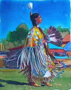 Cawdrey is represented in galleries in Santa Fe, New Mexico; Tucson, Arizona; Bozeman and Bigfork, Montana. She was a 2003 Featured Artist for the Rocky Mountain Elk Foundation and voted "Artists Choice" by her peers at the Treasure State Invitational Art Show, participates in the annual C. M. Russell Show and Auction in Great Falls and is a Signature Member of the Montana Watercolor Society. Her work is exhibited in private and corporate collections across the country and in Europe. (left: Nancy Dunlop Cawdrey, Traditional Dancer)