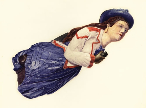 (above: Jerome Hoxie, Figurehead for the Lady Blessington, watercolor, late 1930s, Federal Art Project of Connecticut, Works Progress Administration (WPA), MO 1942.35.1. The Federal Art Project of Connecticut produced a series of watercolors depicting early ship carvings for the Index of American Design, courtesy of Franklin D. Roosevelt Library & Museum)