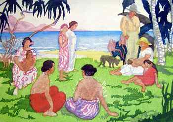 John Hall Thorpe (1874-1947) demonstrates the association to Japanese imagery and printmaking techniques in his work. The brilliant colors and shallow picture plane are two of the characteristics that resemble the Japanese sensibility. Thorpe was a prominent early 20th century Australian woodcut artist. Natt Piper's (1886-1969) illustrations appeared in architectural magazines across the United States. The Colorado-born artist moved to California where he worked as the building inspector for the city of Long Beach, California. Piper created woodblock prints in his leisure time and became an award winning member of several artists groups including the Santa Monica Artist's Association, the Laguna Beach Artist's Association, and the Painters and Sculptors Society of Los Angeles. Piper's wood block prints are highly saturated with color and demonstrate the dramatic results that can be achieved with this medium.