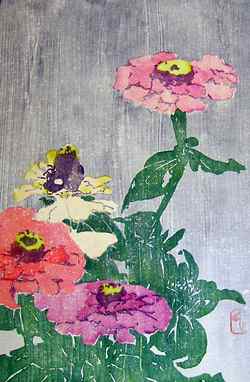 (above: Edna Boies Hopkins, American 1872-1937, "Zinnia," Woodblock print)