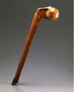 American Indian combat techniques involved a great deal of hand-to-hand combat. Though they served a strictly utilitarian purpose, clubs were also the focus of superb decoration. The very shape of a club expresses a delicate balance between utility and the beauty of design. Most clubs taper down to a narrow handle that allowed for ease in grasping and wielding the club in combat. Weighted at the top, the club can be swung in an easy arc towards its target. The ergonomic design results in an elegant form that is further embellished with carvings and additional decorative elements. Each man fashioned his club according to his personal vision.