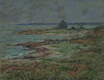 In later life, the independently minded White dismissed Impressionism as "dots and dashes" and resisted any identification with the movement. Many of his pastels, however, evidence a strong Impressionist strain. White's seascapes, with their reductive, nearly abstract compositions and broad bands of pigment, earned praise as examples of the so-called "poster effect," a disposition toward flatness and bold design that the Impressionists picked up from Japanese woodblock prints. His attempt to capture nature's shifting moods in en plein air sketches corresponds closely with Impressionist aims.