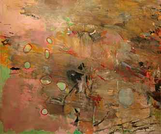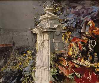 On a deeper level, Kronsnoble's paintings and drawings are poetic commentaries -- he calls them "notes" -- about the struggle between order and chaos in modern life and contemporary art. He appreciates the tension between order and chaos, and in his art seeks to reconcile these by manipulating the various elements of the composition. "It doesn't matter what the parts are," he asserts, "figures, design elements, whatever. . . . whether the art is realistic or abstract or anything in between." For him, the correct balance, the ideal set of relationships, occurs when "it hovers between chaos and order. It therefore looks like life. This being in a state of grace is so much like life that it's a metaphor for life; whether it's abstract or representational, it mirrors life."