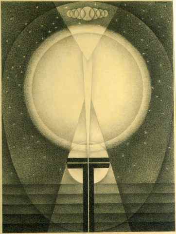 Artists among the thirty-three represented in Surviving Hard Times and whose greater body of work was made outside of California include Emil Bisttram (image attached) of Taos, New Mexico, who was a supervisor for Treasury Relief Act Project in New Mexico, and Modernist Werner Drewes (1899-1985), who taught printmaking at the Brooklyn Museum and was the Technical Supervisor of the TAP's Graphics Division from 1941-42. More typical of the times' gritty industrial subject matter are two prints by Harry Sternberg and Lois Lozowick.