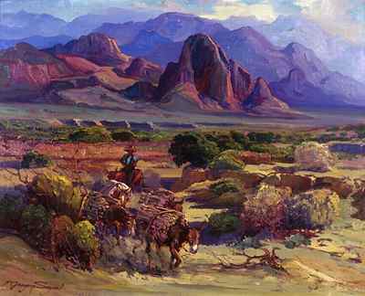 (above: F. Grayson Sayre (1879-1939), Mesquite Wood Train, ca. 1937, Oil on canvas, 36 x 40 inches. Long Beach Museum of Art. Courtesy of the Fine Arts Program, Public Buildings Service, U.S. General Services Administration, Commissioned through the New Deal art projects)