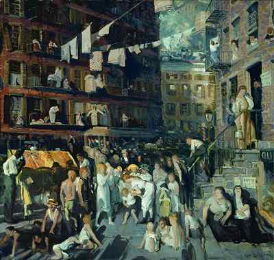(above: George Bellows, 1882-1925, Cliff Dwellers, 1913, Oil on canvas, 40-1/4 x 42-1/8 in. (102.1 x 106.8 cm). Los Angeles County Museum of Art, Los Angeles County Fund (16.4). Photograph © 2009 Museum Associates/LACMA)