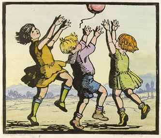 (above: Frances Gearhart, The Lost Balloon, 1928, Color Block Print, 8 1/2" x 10", Collection of Cricket and Robert Oldham)