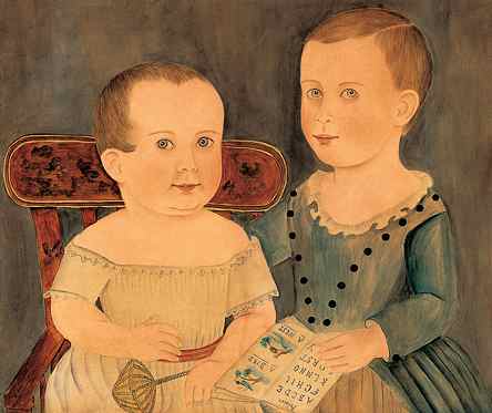 (above: Attributed to Mary B. Tucker (1784-1853), Massachusetts, Learning the ABCs, c. 1840-1844, Watercolor and pencil on paper, 19 1/4 x 23 inches. Collection American Folk Art Museum, New York. Promised gift of Ralph Esmerian. P1.2001.45. Photo © 2000 John Bigelow Taylor, New York)