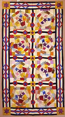 (above: Artist unidentified, United States, Stars and Pentagons Quilt, 1880-1900, Silk, 81 x 44 inches (framed). Collection American Folk Art Museum, New York. Gift of Jacqueline Loewe Fowler. 1981.2.1)