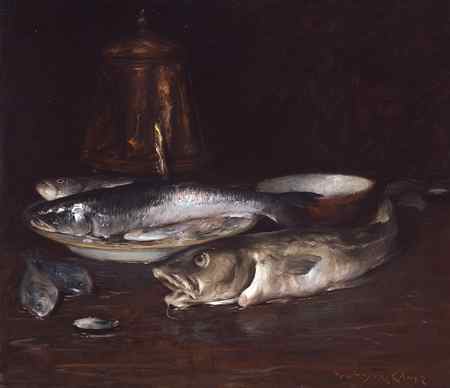 1849-1916), Fish, Plate, and Copper Container (Still Life), Oil on