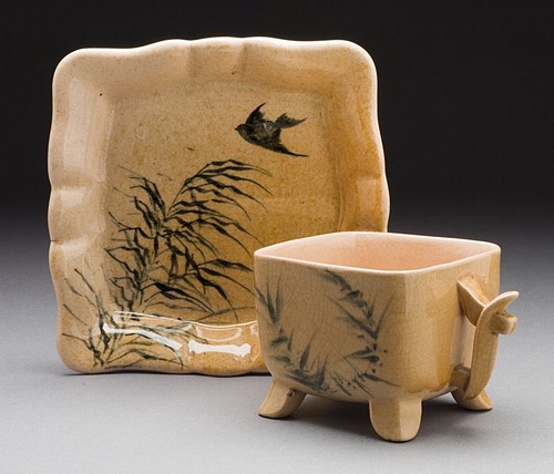 (above: Rookwood Pottery (United States, Ohio, Cincinnati, 'Birds and Wild Grass' Teacup and Saucer, 1884, hand-colored paint on earthenware, Cup: height: 2.25 in (57.15 mm); diameter: 3 in (76.20 mm); Saucer: 4.75 ? 5.13 in (12.06 ? 13.03 cm), Los Angeles County Museum of Art, Decorative Arts and Design - Ellen Palevsky Cup Collection, Gift of Max Palevsky, AC1998.265.17.1-.2. Public domain, via Wikimedia Commons*)