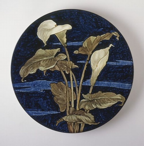 (above: John Bennett's American Pottery (United States, 1877-1883), Charger, 1877, earthenware, diameter: 17 7/8 in. (45.4 cm); Depth: 1 7/8 in. (4.76 cm), Los Angeles County Museum of Art, gift of Max Palevsky and Jodie Evans, M.91.375.6. Public domain, via Wikimedia Commons*)