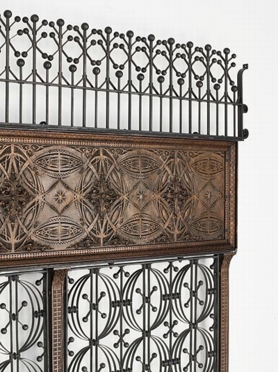 (above: Louis Henri Sullivan (United States, 1856-1924), Winslow Brothers Co. (United States, Illinois, Chicago, 1887-1921), Adler & Sullivan (United States, active 1883-1895), Elevator Surround from the Chicago Stock Exchange Building, c. 1892-94, electroplated copper finish over cast iron, wrought iron, 118 x 74 x 5 1/2 in. (299.72 x 187.96 x 13.97 cm, Los Angeles County Museum of Art, gift of the 2012 Collectors Committee, M.2012.32a-i. Public domain, via Wikimedia Commons*)