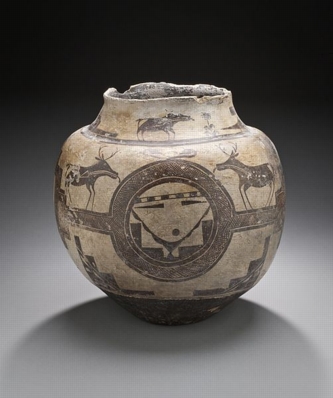 (above: Kiapkwa, Polychrome Water Jar, c. 1840-50, earthenware and pigments, Height: 14 1/2 in. (36.83 cm); Diameter- 14 in. (35.56 cm), Los Angeles County Museum of Art, gift of Camilla Chandler Frost, M.2008.113.1. Public domain, via Wikimedia Commons*)