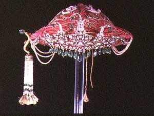 The Virginia Museum of Fine Arts has acquired this jewel-encrusted royal Indian turban, ca. 19th century. Turbans like this were worn by Hindu and Muslim kings during the British Raj. Photo by Katherine Wetzel, copyright 1997 Virginia Museum of Fine Arts